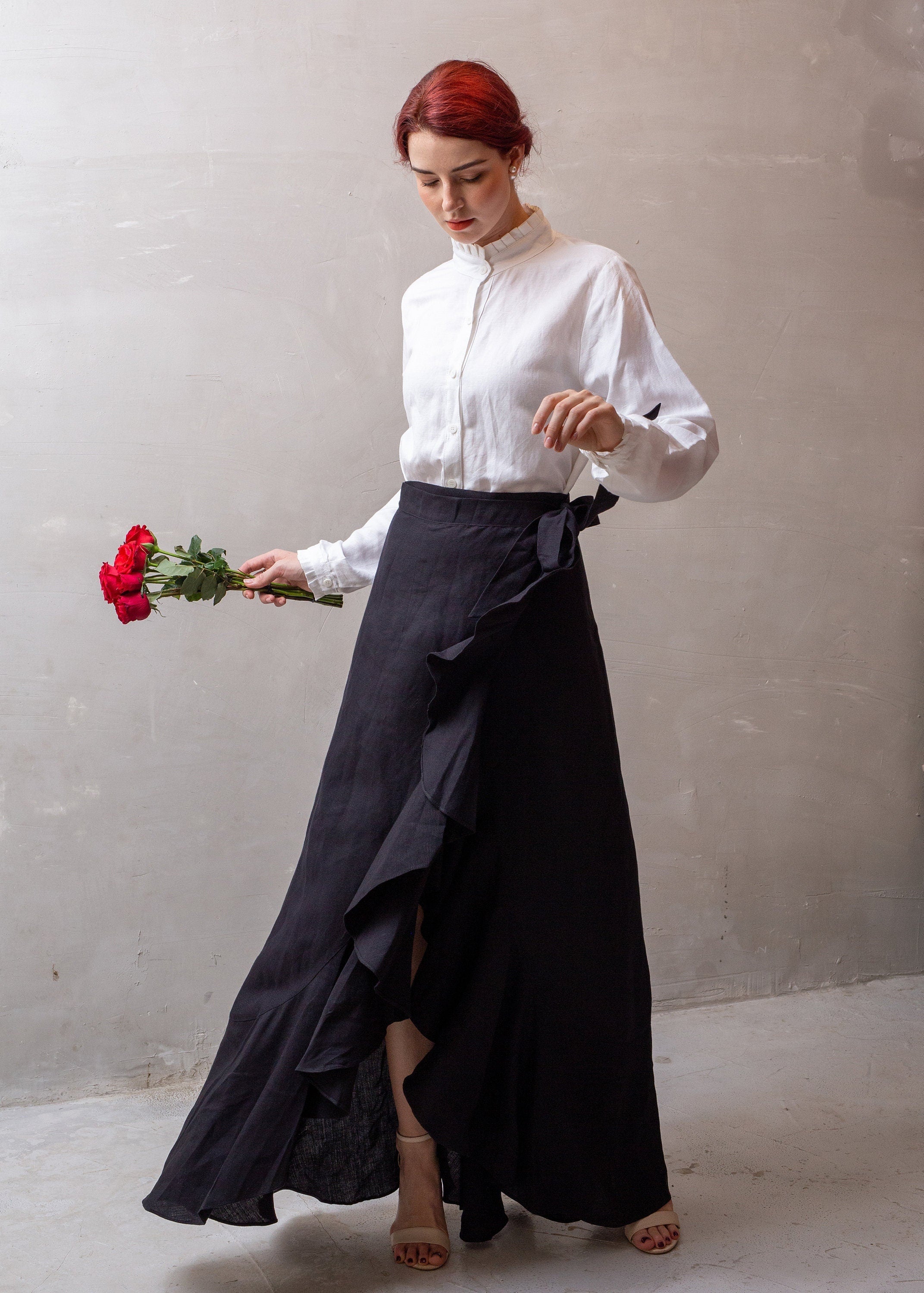 RUFFLE Linen Wrap Skirt